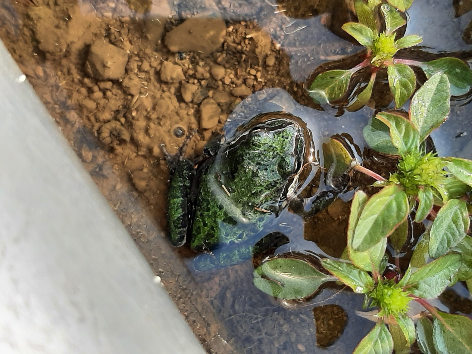 One of the joys of gardening is discovering that the garden has become a habitat for delightful critters like this frog I found out in Grandpa’s Pasture just yesterday (9/5/21). Some of the lengths of irrigation pipe need new gaskets. Since I haven’t gotten to that yet, several portions of the field puddle during the weeks we have water, and the frogs love it. I’d had no luck catching any “on film” so far this summer even though I’ve seen three of varying coloring, so I was thrilled to pieces when this little guy hopped into the puddle, swam under the pipe, and sat there the whole time I took photos! He probably felt invisible in the water? Some of the critters I’ll introduce you to via this blog will be delightful like mr. frog.